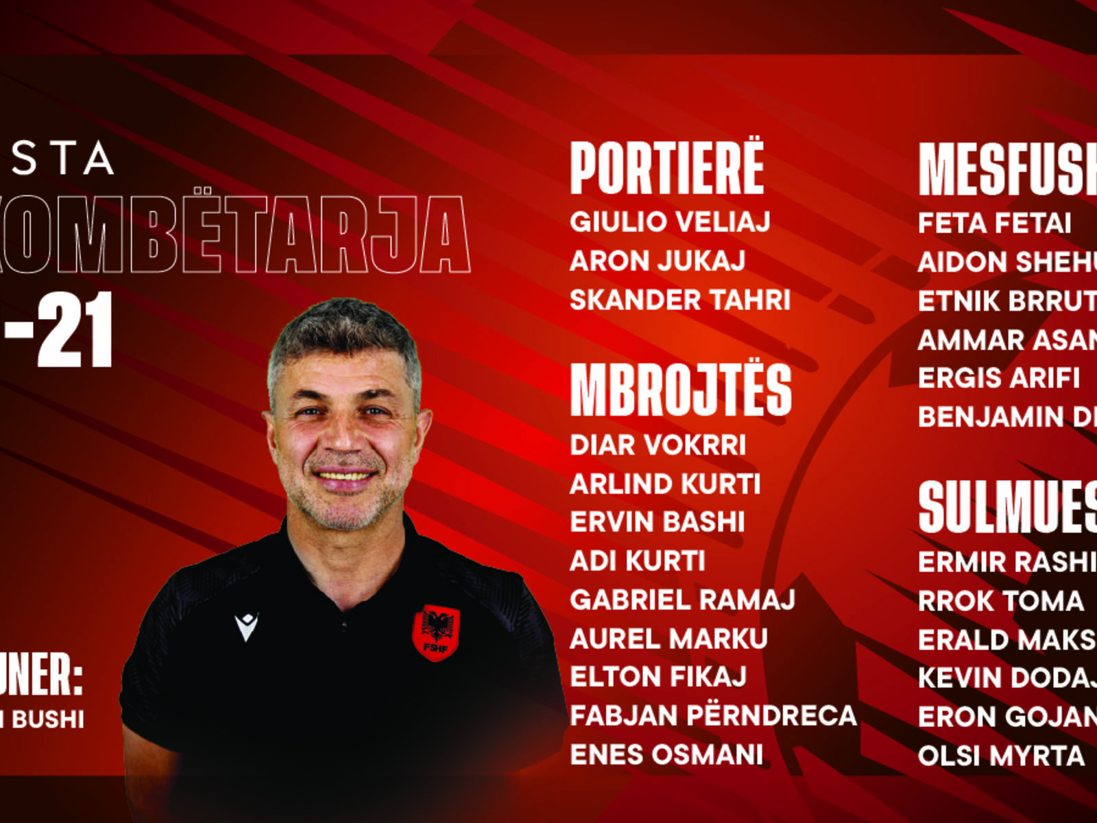 19 Mar 2026 14:00, Kombëtarja U-21 do të luajë një ndeshje miqësore kundër përfaqësueses së Uzbekistanit, si pjesë e përgatitjeve për Kampionatin Europian U-21 2027. Kuqezinjtë do të nisin përgatitjet nga e diela ...
