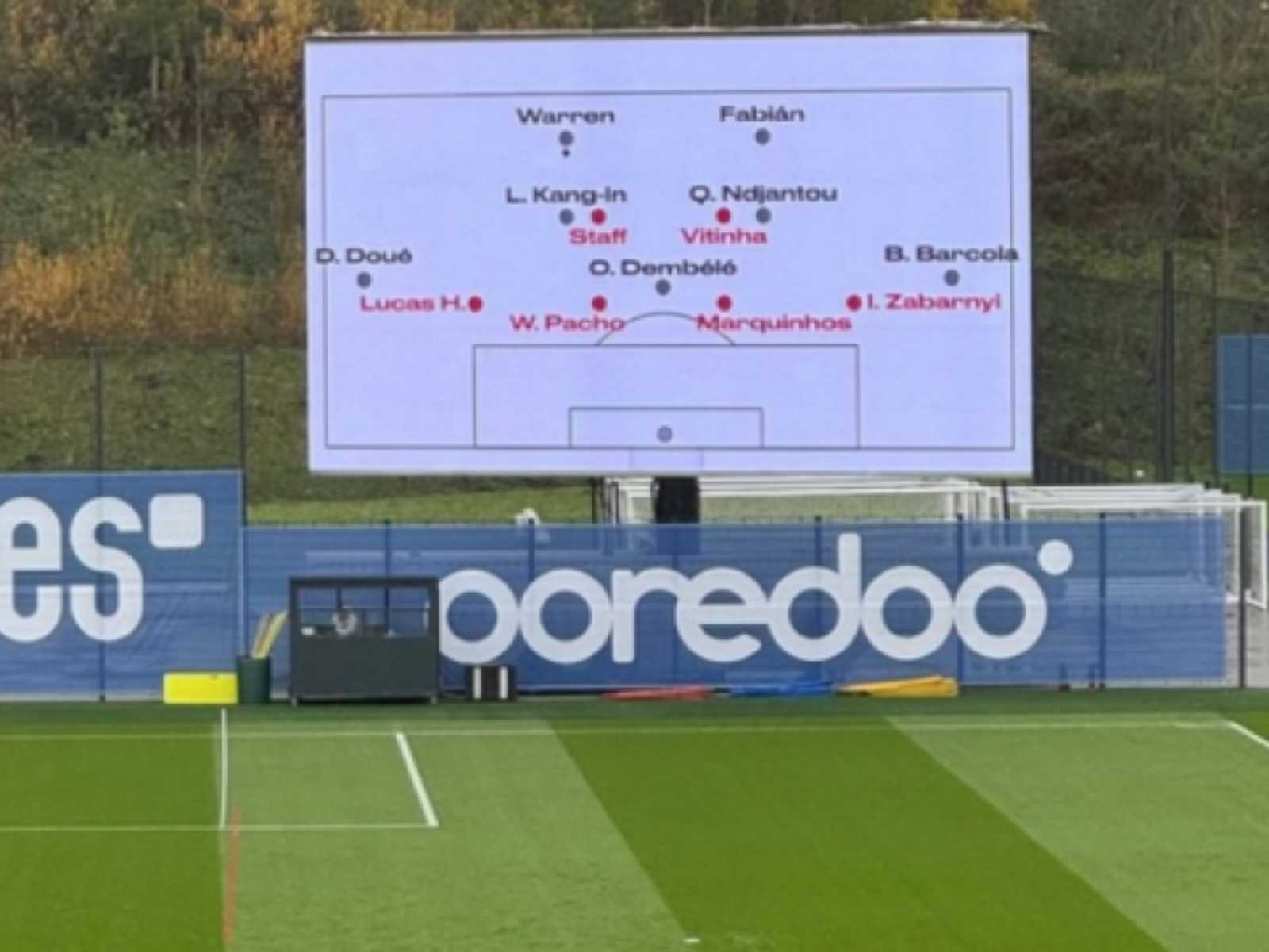 Trajneri i Paris Saint-Germain, Luis Enrique, vazhdon të surprizojë me metodat e tij moderne të punës. Pas famës së “skelës taktike”, tekniku spanjoll ka sjellë risinë më të fundit në qendrën stërvitore: një ekran gjigant të vendosur pranë fushës së stërvitjes. Gjatë seancës së të enjtes në mëngjes, u vu re se ekrani shfaqte emrat e lojtarëve të ndarë me ngjyra të ndryshme – të kuqe dhe të zeza – për të simuluar skema sulmi dhe mbrojtjeje.