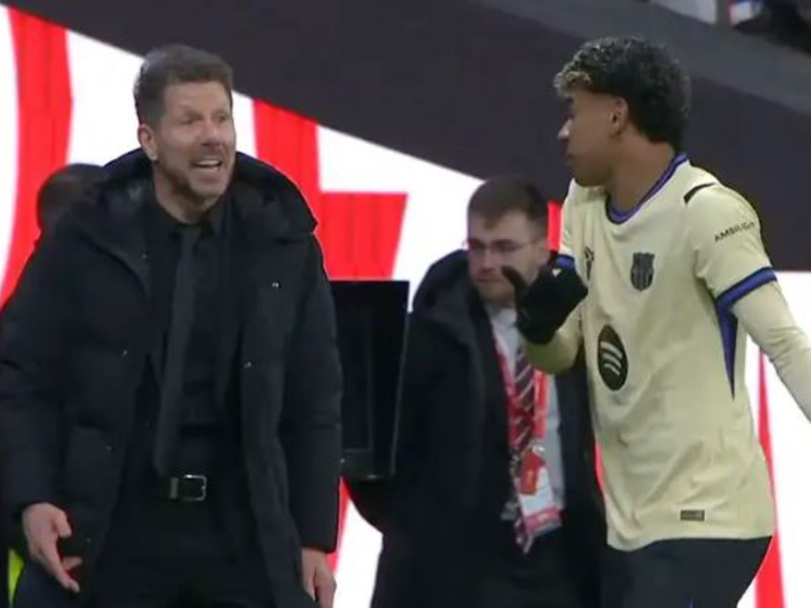 Ngacmime mes trajnerit të Atletico Madrid dhe yllit të katalanasve në ndeshjen e Kupës së Mbretit. Momente tensioni mes Diego Simeone dhe Lamine Yamal gjatë sfidës së parë gjysmëfinale të Kupës së Mbretit. Në momentin e golit të 3-0, të shënuar nga Lookman, trajneri i Atletico Madrid i tregoi tri gishtat sulmuesit të Barcelonës, duke provokuar reagimin e tij.