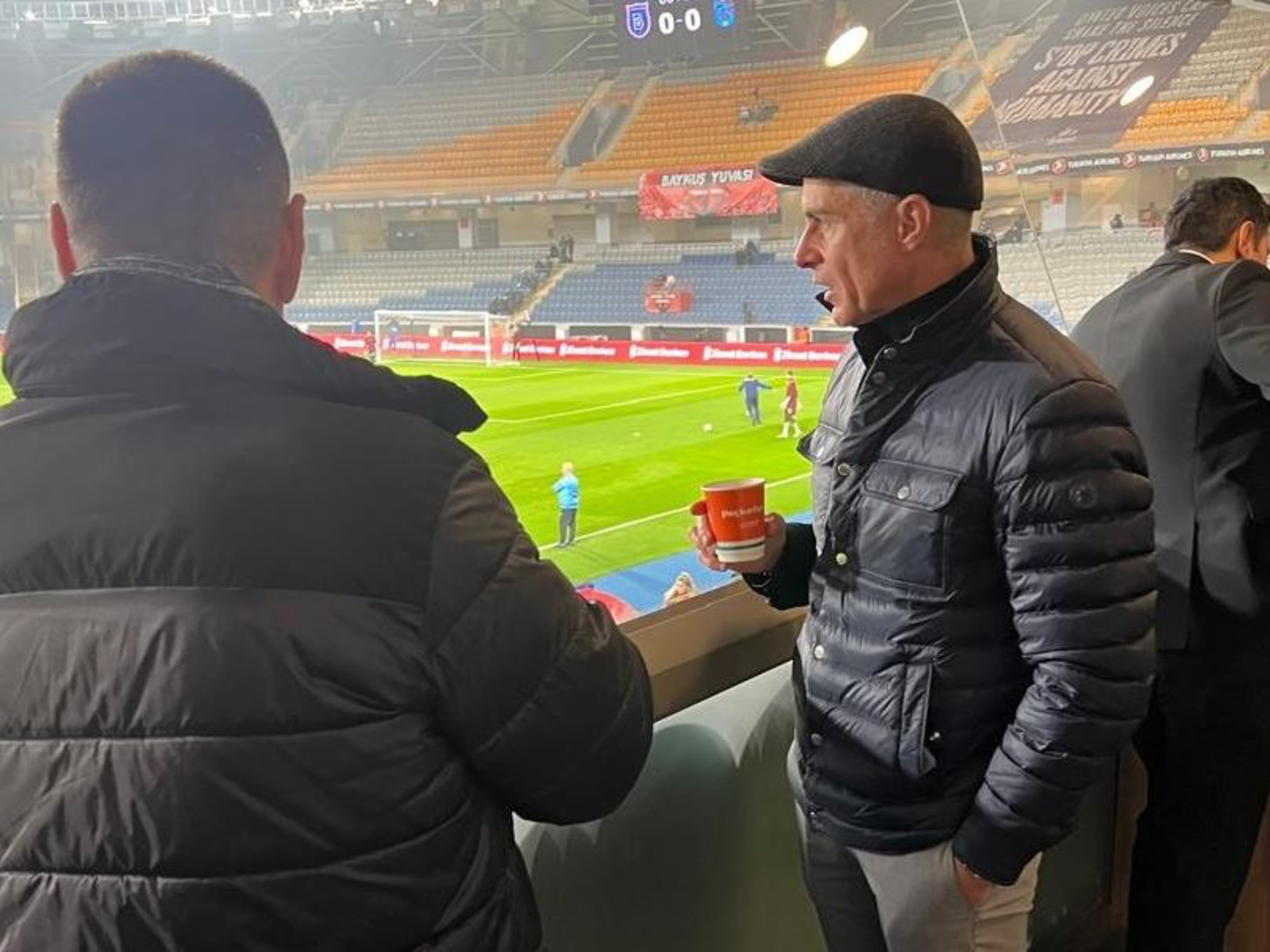 Stafi teknik kuqezi ishte fillimisht i pranishëm në stadium për ndeshjen e Kupës së Turqisë mes Istanbul Başakşehir dhe Trabzonspor, ku ndoqi nga afër paraqitjen e sulmuesit Ernest Muçi. Futbollisti i Kombëtares shqiptare ishte titullar dhe qëndroi në fushë për 90 minuta.